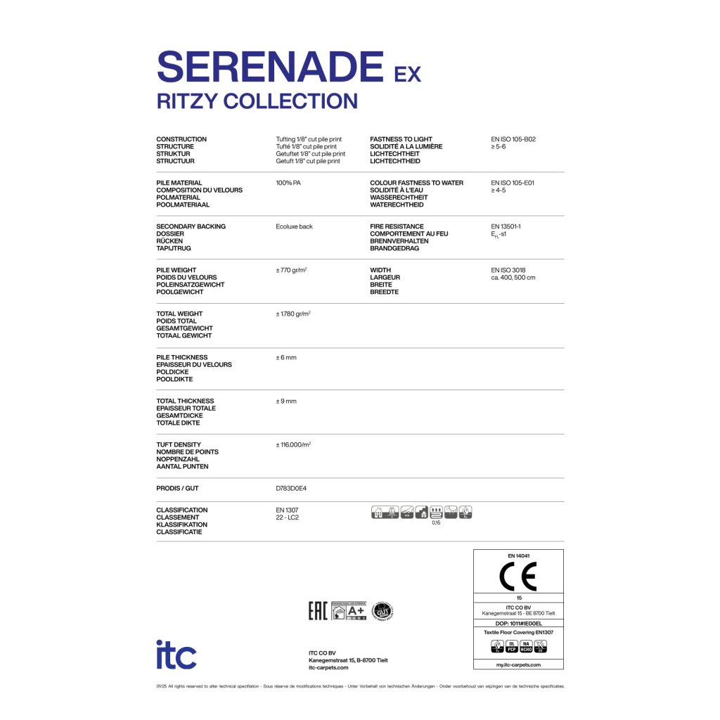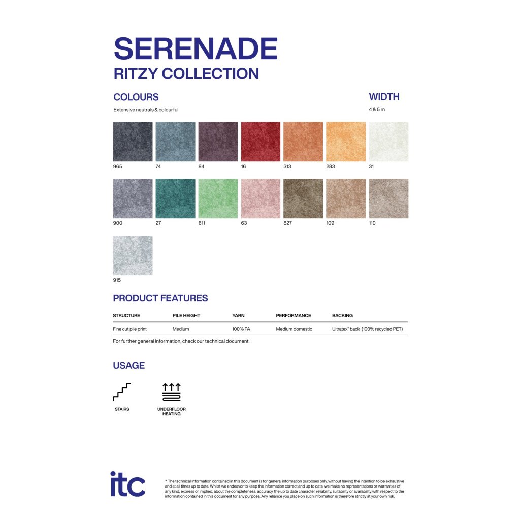 3. Vhodný pro běžné domácnosti S třídou zátěže 22 je Serenade ideální pro obytné prostory jako obývací pokoj, ložnici nebo chodbu s běžnou denní zátěží.