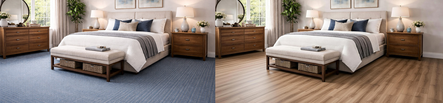 Pokud jsou na prvním místě pohodlí, teplo a útulný pocit – například v ložnicích, obývacích pokojích, rodinných místnostech nebo dětských hernách – zůstává koberec nepřekonatelný. Poskytuje měkké polstrování pod nohama, vynikající pohlcování zvuku, tepelnou izolaci v chladnějších klimatických podmínkách a měkký, příjemný povrch ideální pro relaxaci nebo chůzi naboso. V aktivních zónách volte odolný nylon nebo vlnu odolnou proti skvrnám a s pravidelným vysáváním a rychlým ošetřením rozlitých tekutin vydrží dobře. I když se koberec opotřebovává rychleji (obvykle 5–15 let) a vyžaduje více údržby než vinyl/PVC, nabízí nepřekonatelný hmatový luxus a dekorativní teplo, které tvrdé podlahy nedokážou napodobit.