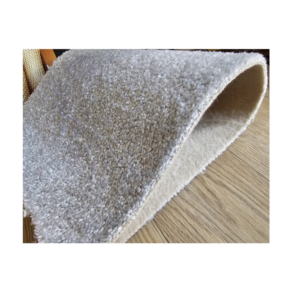Měkký koberec se střiženým vlasem a s filcovou podložkou v moderní světle šedé barvě.