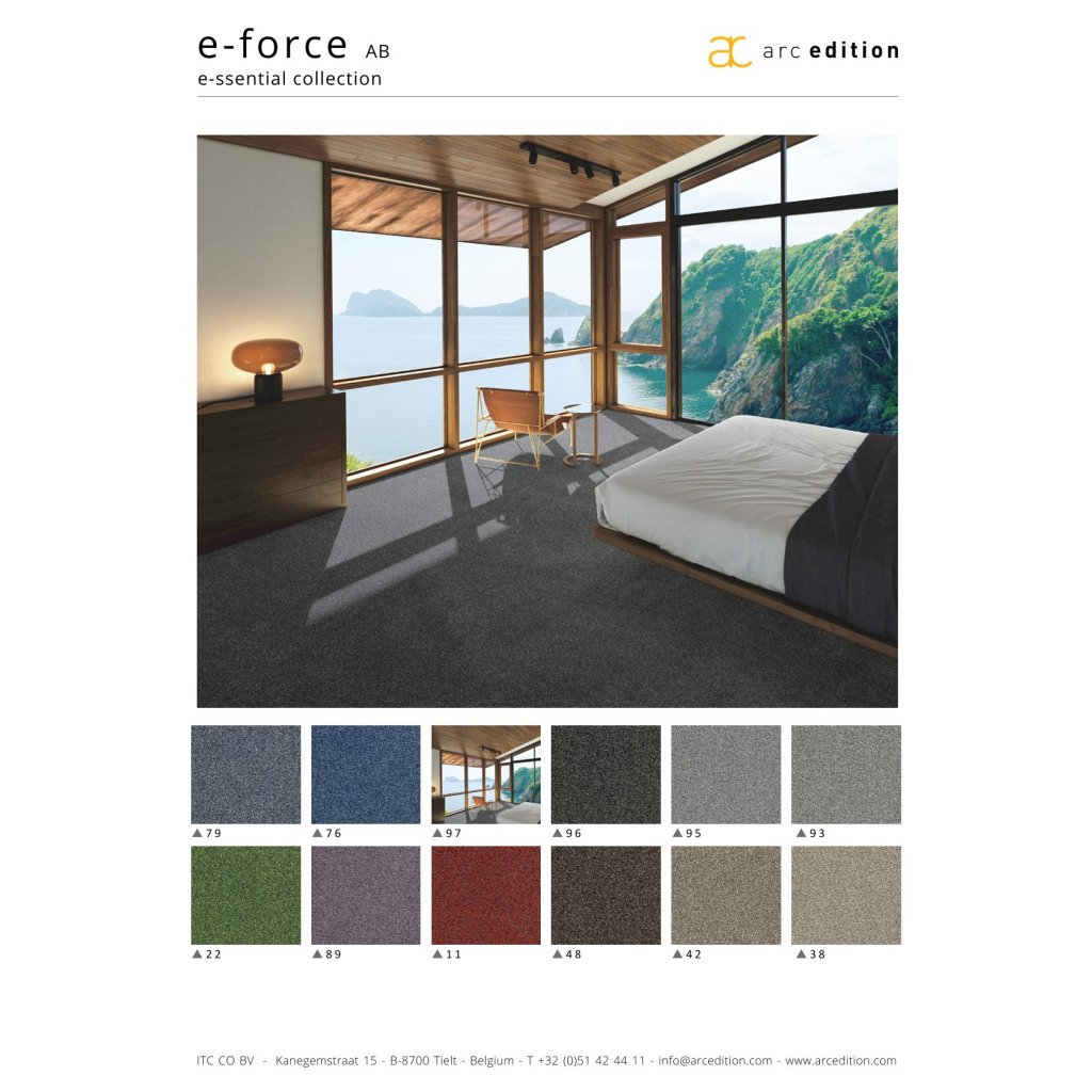 Hluboký a lákavý koberce s twistovaným vlasem ve dvoubarevném provedení, e-force přináší klasický styl do komerčních prostor. S širokou škálou barev, které odolávají skvrnám a nevyblednou na slunci, je e-force vysoce výkonnou kvalitou, která je ideální pro vytvoření bohaté a přívětivé atmosféry v místech s vysokou zátěží. Přineste dlouhotrvající luxus s odolností e-force.